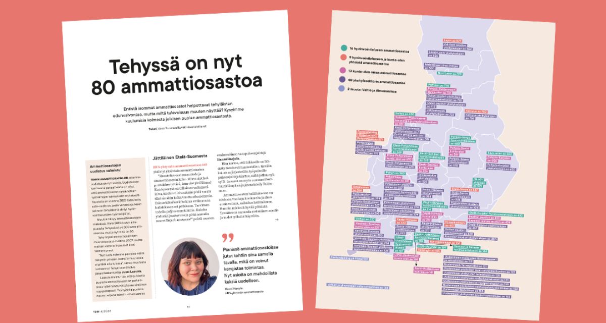 Lataa kartta Tehyn ammattiosastoista